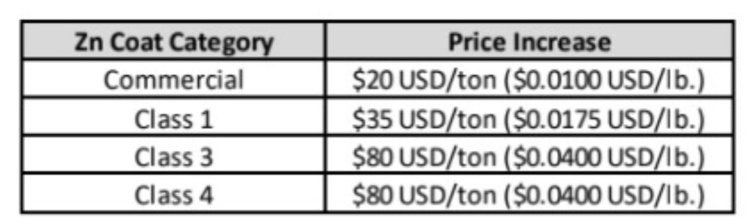Western Steel & Wire continues to negotiate with their supplies to bring to their clients the lowest prices and best lead times. We continue to watch market trends and forecasts, not only for steel itself but for other metals and metal finishes that have direct impact on pricing. For example, we know the price of Zinc is on the rise. Zinc, being a coating for galvanized wire, has increased around 37%. This increase is due to declining inventories. Shipments from Feb 28, 2022 forward will see the following increase, per London Metal Exchange: