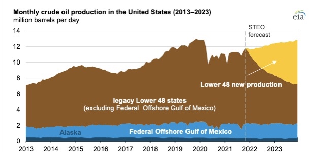 While natural gas prices are forecasted by Energy Information Administration (EIA ) and (International Monetary Fund) IMF to lower in 2022 and 2023, crude oil production in the US will likely rise which could see a decline in overall crude oil prices, per EIA. See charts below for their forecasts.