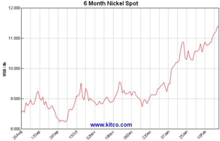 - Nickel is up over 33% since August 2021. It is now over $11/lb.